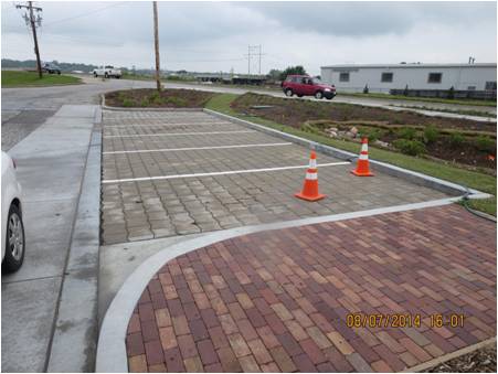 The Omaha Sewer Maintenance Facility houses three green infrastructure practices on site, including a bioswale, a bioretention garden, and a small parking stall area with permeable pavement. This site is unique in that all three of the green infrastructure practices are interconnected with both the bioswale and the permeable pavement area draining into the bioretention garden. Altogether the three green infrastructure practices collect stormwater runoff from a 0.95-acre drainage area and are capable of holding roughly 2,250 cubic feet (16,831 gallons) of stormwater runoff.